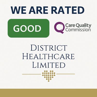 We’re proud to share that following our latest inspection, District Healthcare has been rated 'Good' across all five key areas – Safe, Effective, Caring, Responsive, and Well-led.